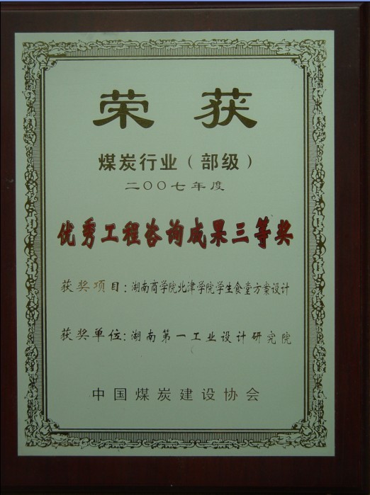湖南省優(yōu)秀設計表揚金獎(1984)